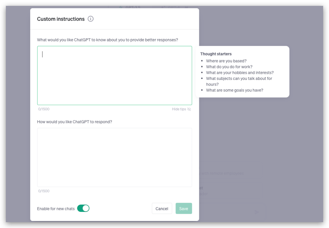 更多详细内容,请参考 OpenAI 官方介绍:https://help.openai.com/en/articles/8096356-custom-instructions-for-chatgpt